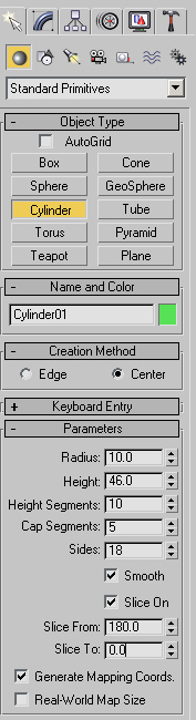 Create a Cylinder, it is going to be our coin and use these parameters: