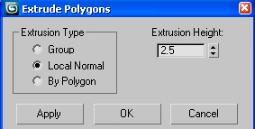 Select an extrusion height of 1.5 in a Local Normal Extrusion Type